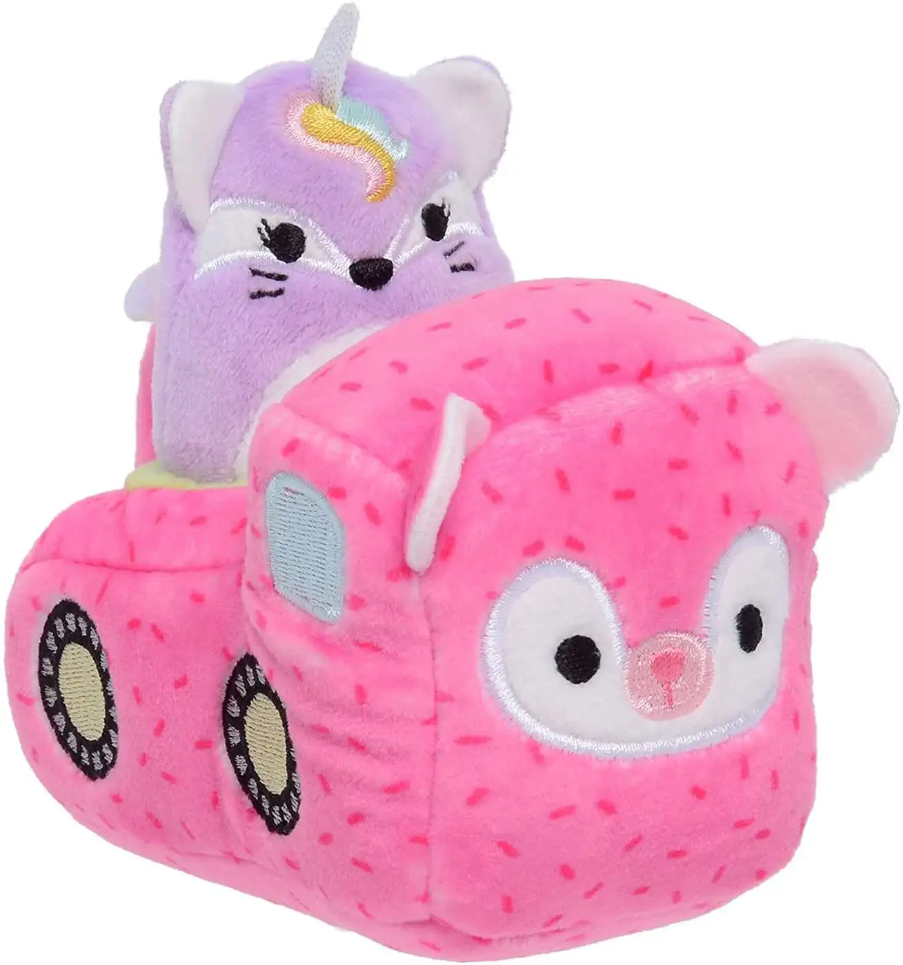 Squeeze your Mini-Squishmallow into their flashy vehicles and explore Squishville. The Squishville world is made with super-soft filling making it the cosiest place on earth. Roll through Squishville in a plane, car, or even a carriage.